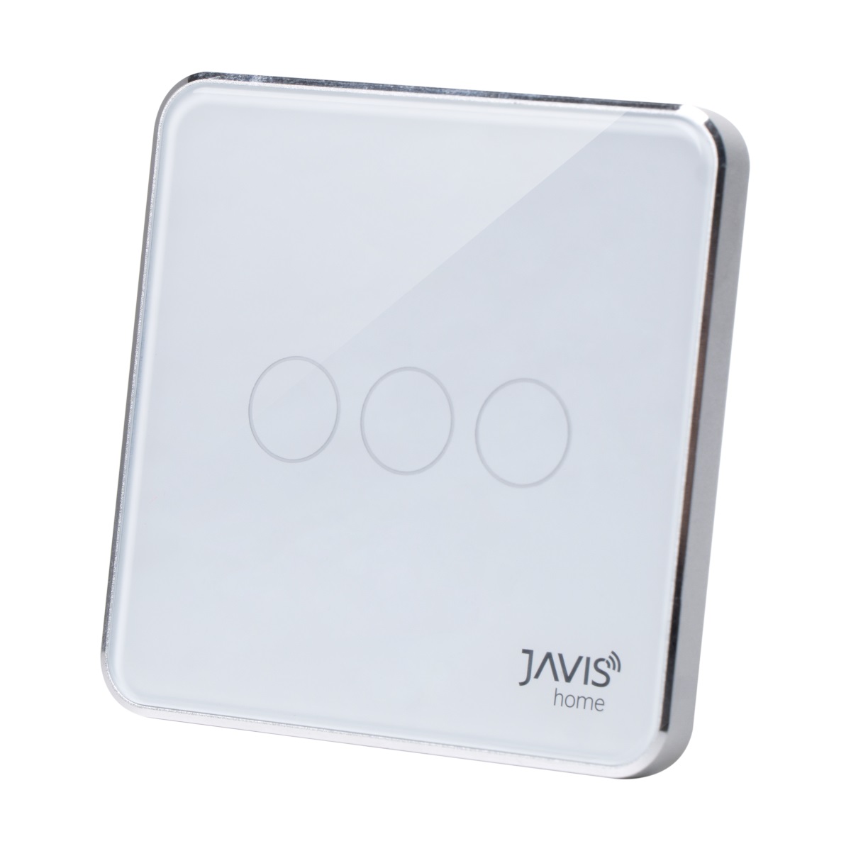 Công tắc Wifi JAVIS 3 nút vuông trắng viền bạc